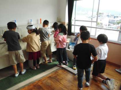 回を重ねるごとに,他学年どうしの関わりが増えてきました。はき掃除をちりとりでサポートしたり,雑巾の干し方をアドバイスしたりと,6年生が中心となってリードしています。活動の終わりには,良かった場面や次回の取り組み方について話し合いました。