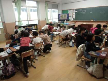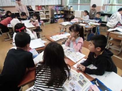「肥料が入った土を使っているのかな」ということや「農薬を使わないようにしているのかな」という予想をもちました。班での交流も上手にできていました。