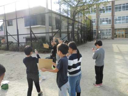 今日は,虫眼鏡で光を集めると暖かさや明るさはどうなるでしょうかをいう学習課題を持って実験をしました。虫眼鏡を遠ざける方がより明るくなることや暖かくなることが分かりました。