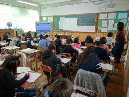 音楽の学習で,北原白秋作詞・山田耕筰作曲の「待ちぼうけ」という歌曲の鑑賞を行いました。まず,どんな歌詞なのかを読み,次に曲をじっくり聞きました。