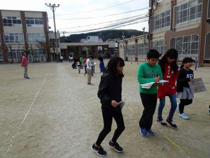 算数の授業で,自分の歩幅を平均して求めました。