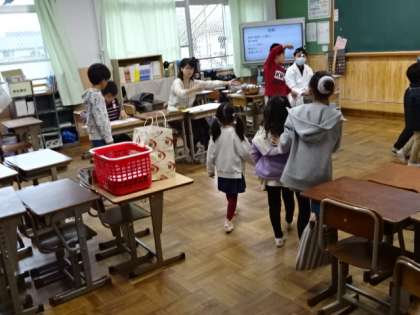 28日(水),来年の4月に入学の子どもたちが就学時健診を受けました。案内役と各健診のお手伝いは5年生の子ども達です。初めは少し緊張した面持ちだった新1年生も,5年生に案内してもらううちに,緊張も和らぎ,楽しそうに話をしていました。5年生も準備も含めてとても意欲的に動き,新1年生のおもてなしをしていました。新1年生の目線になり優しく話しかけたり,新1年生とぎゅっと手をつないで歩いたりする姿は,とっても微笑ましかったです。来年4月の入学が楽しみです。