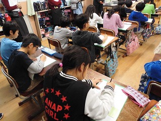 6日(木)に4年生の校内研究授業が行われました。授業内容は,総合的な学習の時間「人をみつめる 〜教えて,先ぱい〜」でした。「未来宣言(1/2成人式)」に向けて,地域の方をはじめとする先ぱいへのインタビューの内容を考えました。「子どものころの夢は何ですか」「今の職業に就いたのはどうしてですか」と,友だちと話しあいながら考える姿が見られました。1月の「ふれあいトーク」にて地域の方々にインタビューを行うので,今からその日が楽しみです。