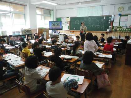 冬休みに読んだ本の中から外国の本を選び,おもしろかったことなどを見つけました。それを「おはなしの木のカード」に書き,交流しました。交流後に感じたことを発表したり,読みたい本を見つけたりすることができました。