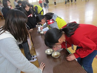 給食週間の取組の一環として,豆つまみ大会が行われました。