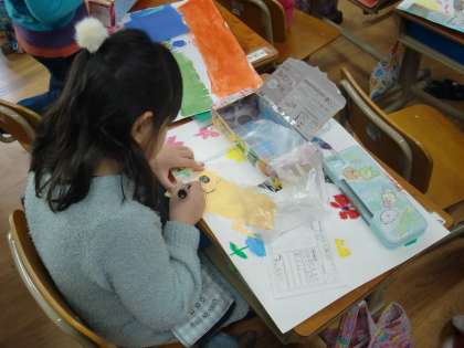 作品の鑑賞カードを書きました。工夫した所やおすすめポイントなど,作品をじっくり鑑賞して書くことができました。