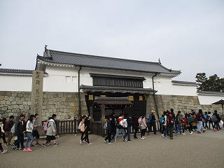 学校に集合し,時計や一日乗車券を確認し,全員で二条城に行きました。