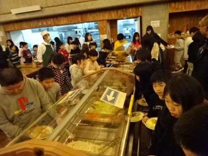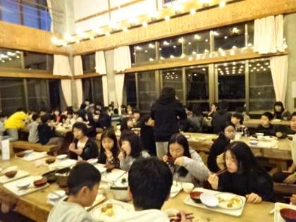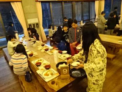 活動の後はお風呂に入り夕食です。食堂の利用も2回目となり,随分スムーズに利用できるようになりました。みんなモリモリ食べて元気です。