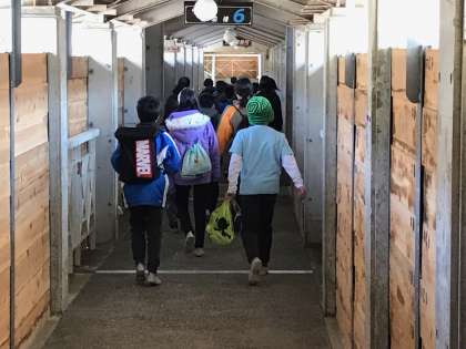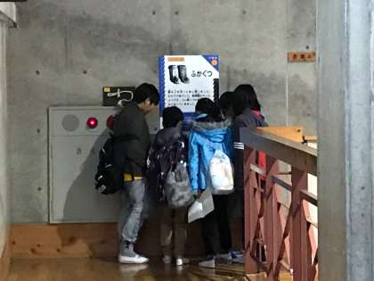 午前中2つ目の活動は「館内パズルラリー」。グループごとに渡されたパズルにあてはまる問題を見つけ,その問題を解いていきます。3年生の社会で学習した昔の道具の知識や雪国の暮らしについて,ヒントをもとに解いていきました。30もの問題の中であてはまるパズルはわずかに2つ。グループで協力して必死に探しながら館内中を散策していました。