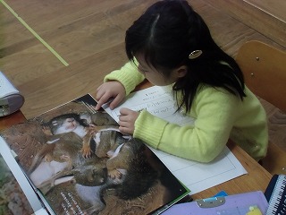 学校図書館の本を活用しながら,教科書にのっていない動物の赤ちゃんの様子を調べています。生まれたころの様子や大きくなっている様子について調べることができました。