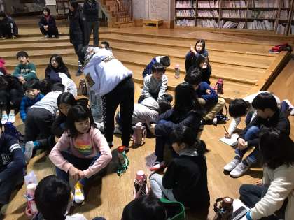5年 山の家3日目2 朝からエビとカニが出現!?(朝の集い)