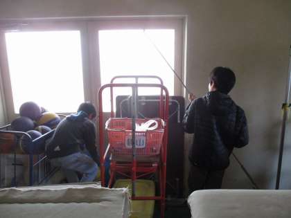家庭科の学習の一環として,お世話になった学校への感謝の気持ちを校内清掃というかたちで表す活動に取り組みました。