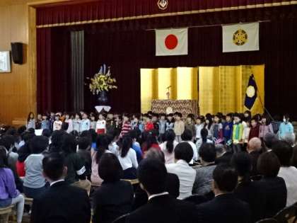 まずは新一年生70人が,ドキドキしながら6年生とともに入場してきました。6年生の手をぎゅっと握る姿はとてもかわいらしかったです。その後は担任発表や2年生のお迎えの言葉などがありました。2年生は学校の様子をかっこよく1年生に教えてくれました。6年生もしっかりとした態度で臨み,入学式の雰囲気を引き締めてくれました。