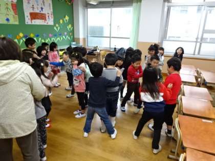 1年生も少しずつ学習が始まりました。音楽の授業では音に合わせて「かもつれっしゃ」をしました。同じクラスの友だちともたくさん交流でき,楽しそうに活動していました。