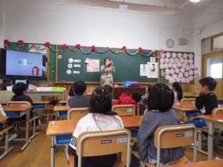 明日から始まる給食にむけて,栄養教諭の小橋先生に給食の準備の仕方を教えていただきました。机の上の用意の仕方,エプロンのたたみ方,牛乳の飲み方など,たくさん教わりました。明日の給食が今からとても楽しみです。