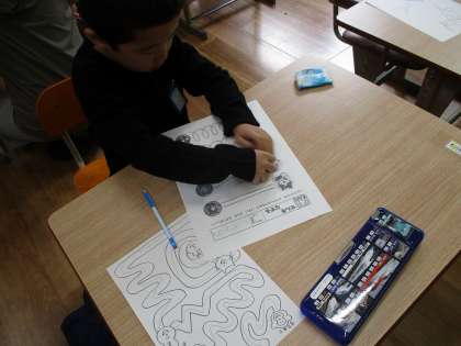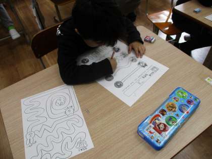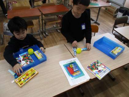 鉛筆の持ち方を確認したり,お道具箱の使い方を練習したりしました。