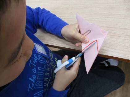 はさみを使って,桜の花を作りながら,使い方を確認しました。