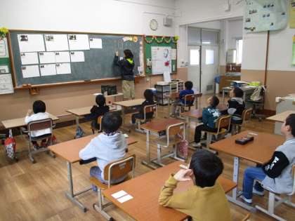 マイクを持って,お友だちにインタビューをしました。