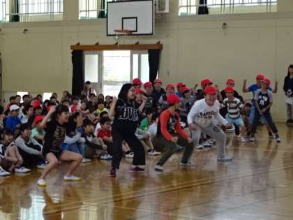 <1枚目>5年生の出し物「Believe」…鏡山小の中にあるたくさんの「T」を見つけて紹介してくれました。