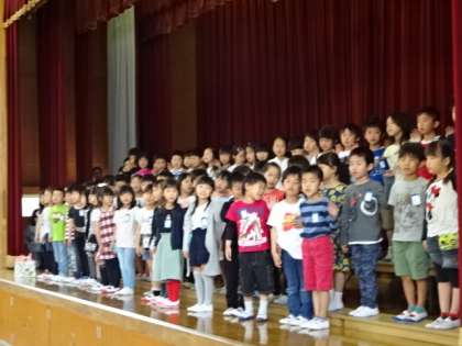 <3枚目>1年生の出し物「どんな人がすきですか」…こんな小学生になりたいという思いをかわいく歌で歌ってくれました。
