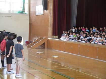 1年生の入学をお祝いする会では,たいよう学級のお兄さん,お姉さんが作ったプレゼントを言葉を添えて渡したり,1年生から歌のお返しをしたりして,全校のみんなと楽しい時間を過ごすことができました。