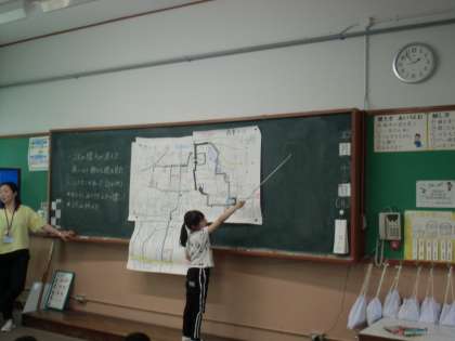 今日は,校区探検で知ったことをいかして,鏡山むすぶ学習(総合的な学習の時間)を進めました。バス停がたくさんあることから,校区にはバスが走っていることに気が付くことができました。