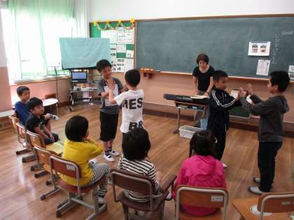 素敵な声を出すコツを学んだり,リズムを聞き取り,順番に音を出したりしました。