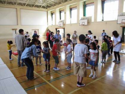 ゾロリグループ(鏡山小学校,陵ヶ岡小学校,西野小学校,山階小学校,安朱小学校)の育成学級の児童が集まり,自己紹介をしたり,一緒に歌やゲームをしたりして交流を深めることができました。