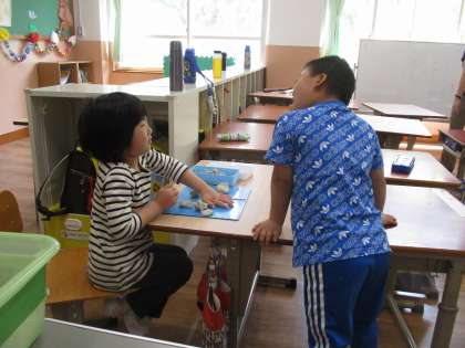 全学年のお友だちがそろうたいよう学級ならではの微笑ましい休み時間のひと時です。