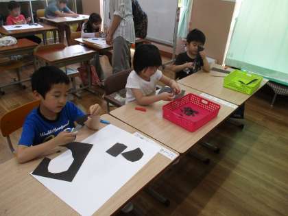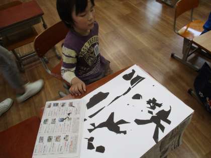 黒い画用紙をちぎったり切ったりして形を想像していきます。