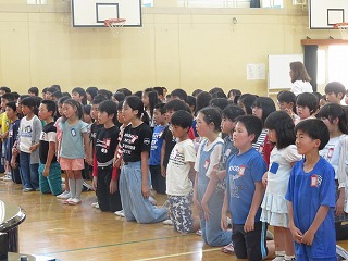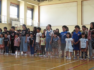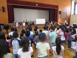 6年生に,鏡山小学校の校歌を教えてもらいました。6年生のとてもきれいな歌声でお手本を披露してもらった後,実際に歌ってみました。これからいろんな場面で歌うことがあります。のびのびと歌えるよう,6年生に教えてもらったことを思い出しながら,練習していきます。