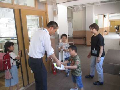 たいようカレンダーを職員室や給食室にプレゼントに行きました。