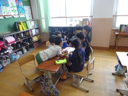 学級では各係で集まってめあてを考えたり,役割分担をしたりしています。