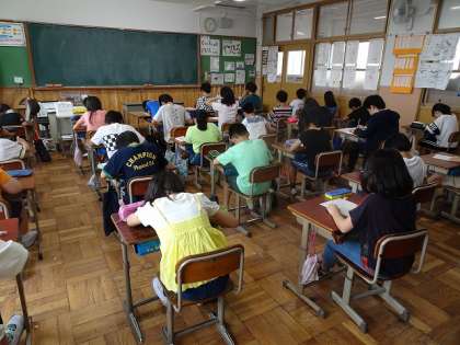 国語科の授業の初めに,漢字の10問テストを行いました。毎日の宿題で身につけた力を発揮していました。
