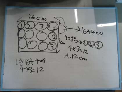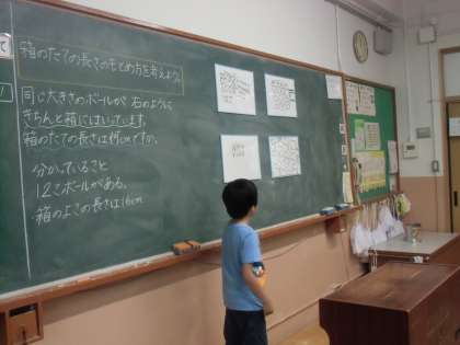 問題を確認した後,どうしたら箱の縦の長さを求めることができるかを考えました。自分の考えを図や式で表しました。