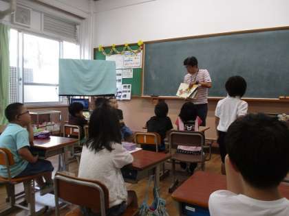 今日は朝の会の前に,竹中先生が読み聞かせに来てくださいました。
