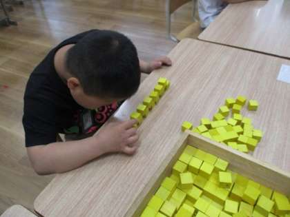 算数の教具に親しみながら遊ぶ姿も見られました。