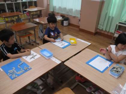 書き順や線と線のつながり方,重なり方を考えながら,黙々と頑張ることができました。