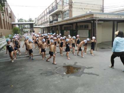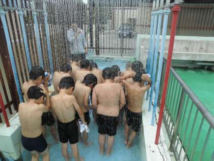 その後,冷たいシャワーを我慢して,いよいよ水泳学習のスタートです。