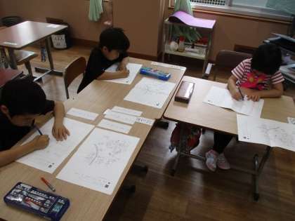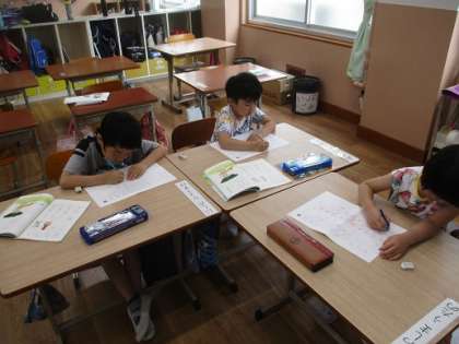 学習した平仮名を使って,絵から想像したり,違いを見つけたりしながら書いています。