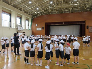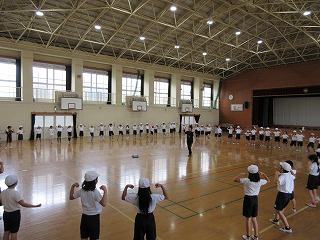 体育館でレクレーションの練習をしています。