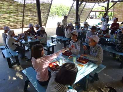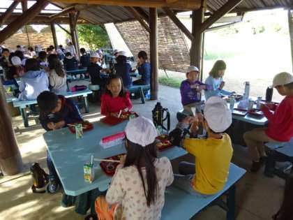 朝ごはんで腹ごしらえです。昨日はご飯を残す子も多かったですが,朝は比較的よく食べていたように思います。2日目は活動が盛りだくさんです。しっかり食べてエネルギーを満タンにして,2日目も楽しく頑張りましょう!!