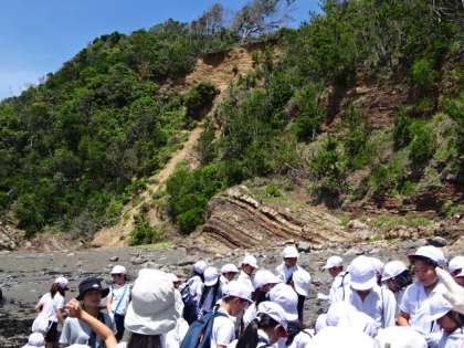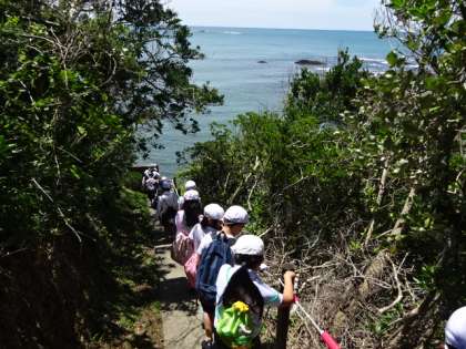 午前の活動はみさきの家から徒歩10分ほどのところにある宮崎浜というところに行きました。崖を下っていくと急に広がる太平洋!!思わず「おぉ〜!」「きれい!!」と歓声が上がっていました。