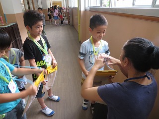 「なかよしいっぱい大作戦」の計画を立てたので,実際に校舎を探検して,いろいろな教職員に会いに行きました。先生を見つけて自己紹介をし,「握手をしてください。」「すきな給食はなんですか。」と,話しかけることができました。たくさんの先生と仲良くなることができ,とてもうれしそうにしていました。