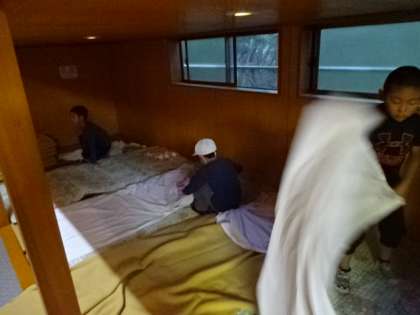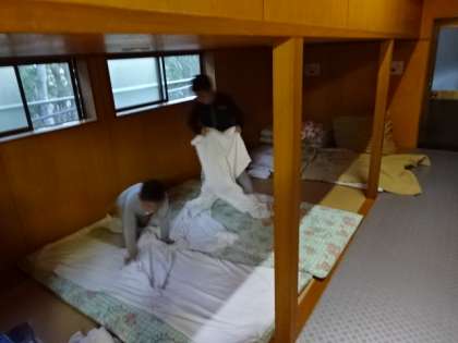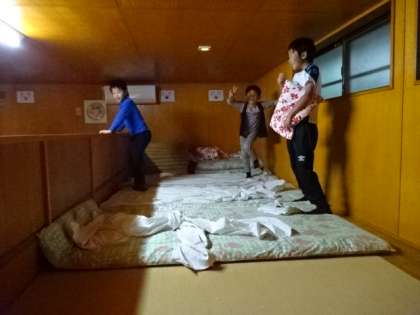 入浴を待っている間を使って寝具準備を協力して行いました。