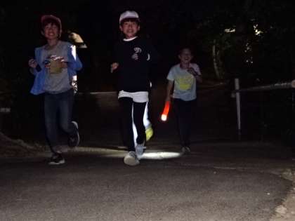最後の夜の活動は,夜の自然を満喫するナイトハイク。途中で怖くなる子もいましたが,班の仲間が支える姿が印象的でした。チェックポイントでもらったカードをつなげると…。途中でホタルに出会うなど,素敵なナイトハイクになったようです。