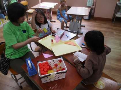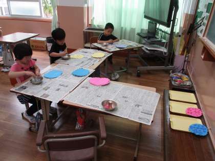 蓮と牡丹の絵を描いたり,七夕の飾りを作ったり,アジサイをつくったり,それぞれの課題に取り組んでいます。