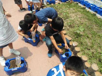 毎日継続してお世話をするのは簡単なことではないですが,一人一つのプランターなので全員のミニトマトが実るように願っています。
