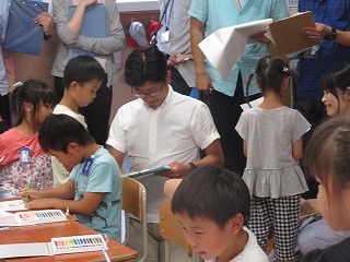 1年1組は,6時間目に研究授業を行いました。たくさんの先生が参観をしに来たので,緊張しながらも,初めての6時間目の授業とは思えないくらい意欲的に取り組んでいました。「なかよしいっぱい大作戦」でしてきたことを発表したり,楽しかったことを絵にかいたりしました。描いたことをいろんな先生に伝えに回りました。