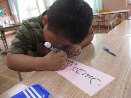 七夕の笹飾りを作ったり,短冊にお願いごとを書いたりしています。